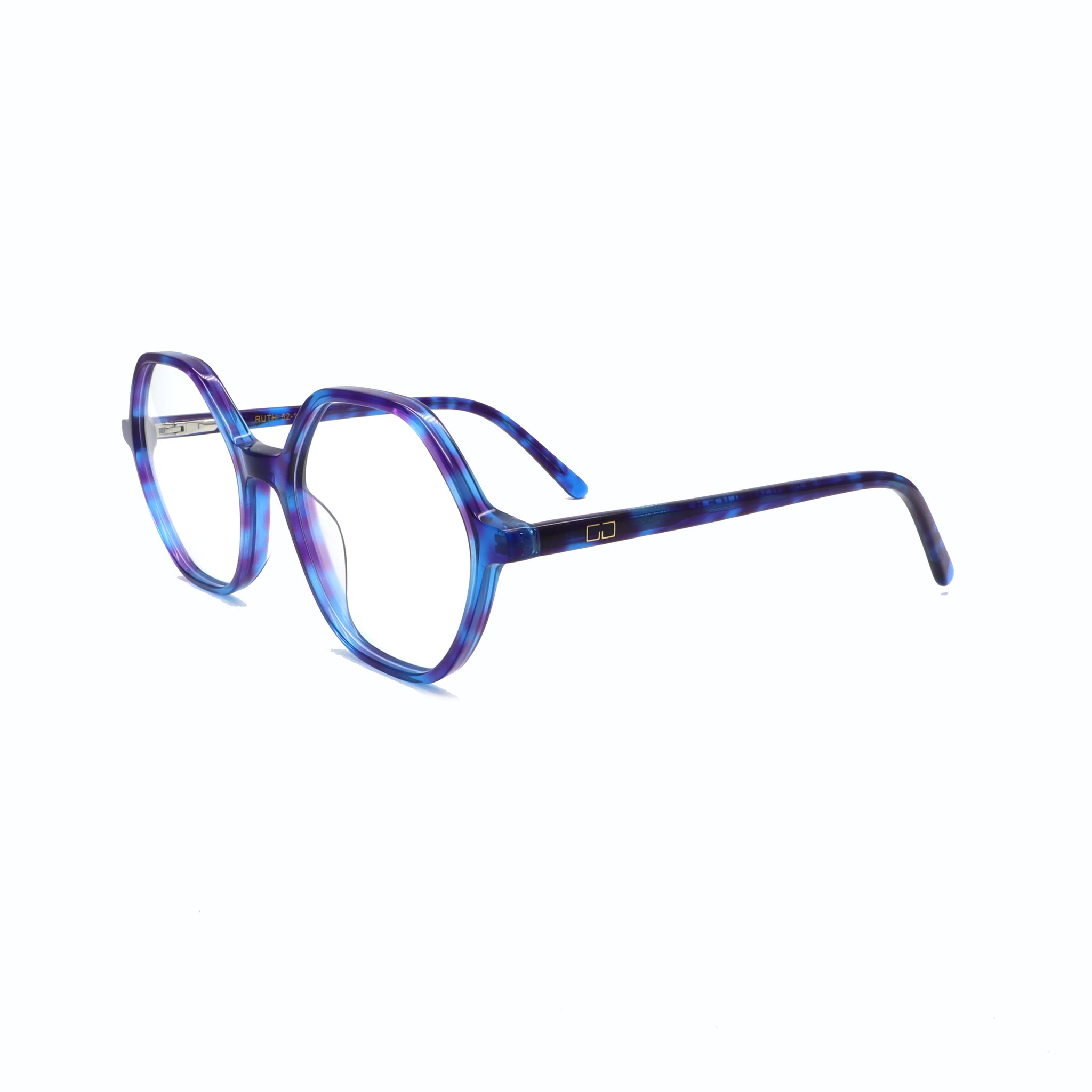 Ruth destaca por su silueta geométrica de inspiración hexagonal, que reinterpreta el estilo retro con un toque contemporáneo. Su montura de diseño oversize combina ángulos marcados con líneas suaves, creando una pieza con mucha personalidad y carácter.